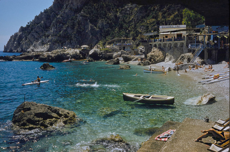 A beach scene on the island of Capri, Italy, 1959. (Toni Frissell)