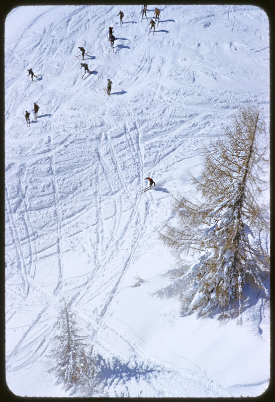 A group of skiers on the piste at the St. Anton ski resort, Austria, 1955. (Toni Frissell)