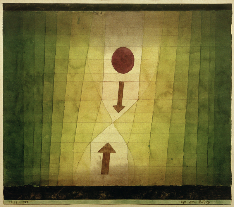 Klee, Paul; 1879–1940. Vor dem Blitz, 1923. Aquarell und Bleistift auf Papier, oben und unten Randstreifen mit Gouache, Aquarell und Feder auf Karton, 28 x 31,5 cm. AKG