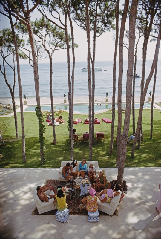 Note this image is available as a Limited Edition Estate Stamped Print (edition size 1/150). Guests at a party at the home of Sebastiano Bergese in Marbella, Spain, August 1967. (Photo by Slim Aarons)
