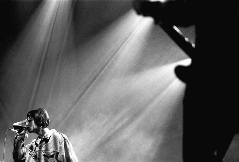 Portrait of Oasis. jill Furmanovsky recalls ‘Liam downs a pint while Noel watches and waits. That sums up their working relationship!’. The Point, Dublin, March 1996. (Photo Jill Furmanovsky) Edition: Jill Furmanovsky Edition 30