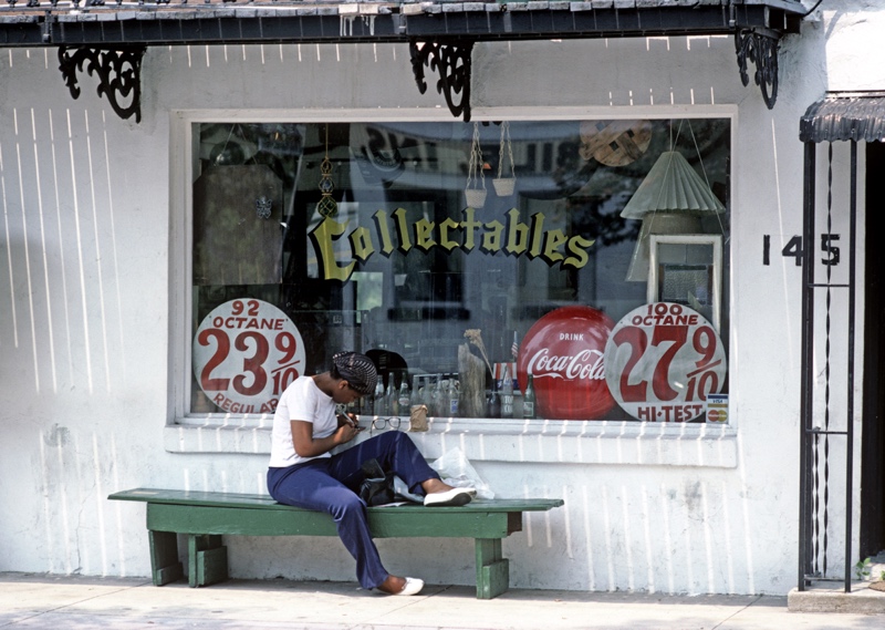 An African American pauses on a bench outside a shop in downtown Savannah, Georgia, USA, 1983. (photo ALAIN LE GARSMEUR) All prints are on archival photographic papers and limited edition per paper size offered.