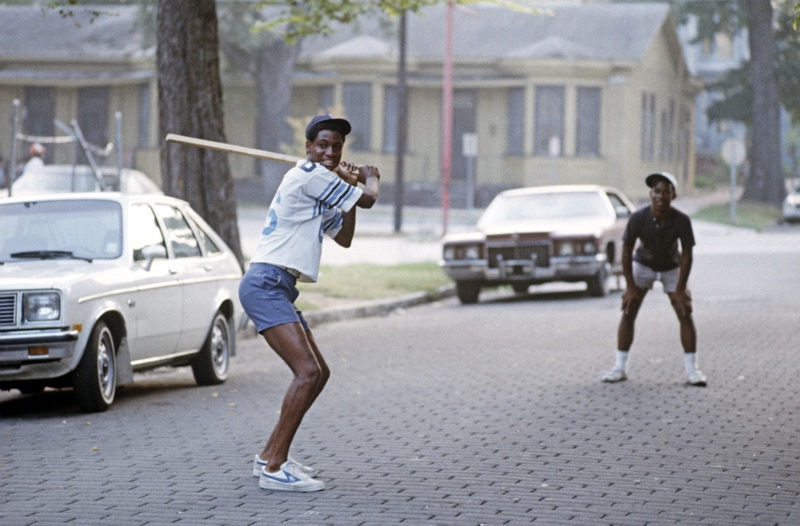 African Americans having fun playing baseball in the street in downtown Savannah, Georgia, USA, 1983. (photo ALAIN LE GARSMEUR) All prints are on archival photographic papers and limited edition per paper size offered.